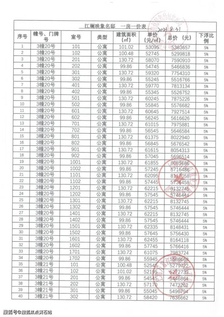 万科·海上映象项目一房一价表▼