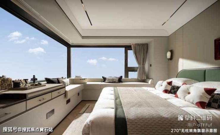 ◐亮点3:豪华环景主卧,创新设计270°无柱转角飘窗