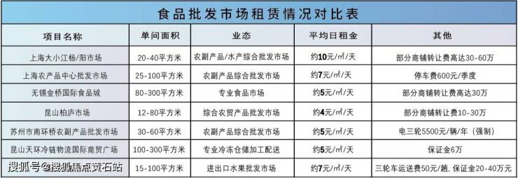 八、数据分析:同类食品批发市场租金对比