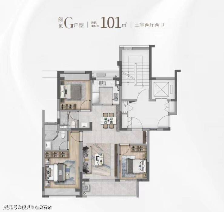高层主力建面约 91-101㎡三房两厅两卫,格局方正、动静分离、采光充足,兼顾实用性与舒适度;叠墅产品 90-136㎡多元空间可选,上下分层、私密性更强,满足改善家庭居住需求。
