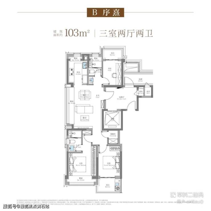招商序100-103㎡ 三房两厅两卫 | 南向双阳台,餐客一体,尺度从容