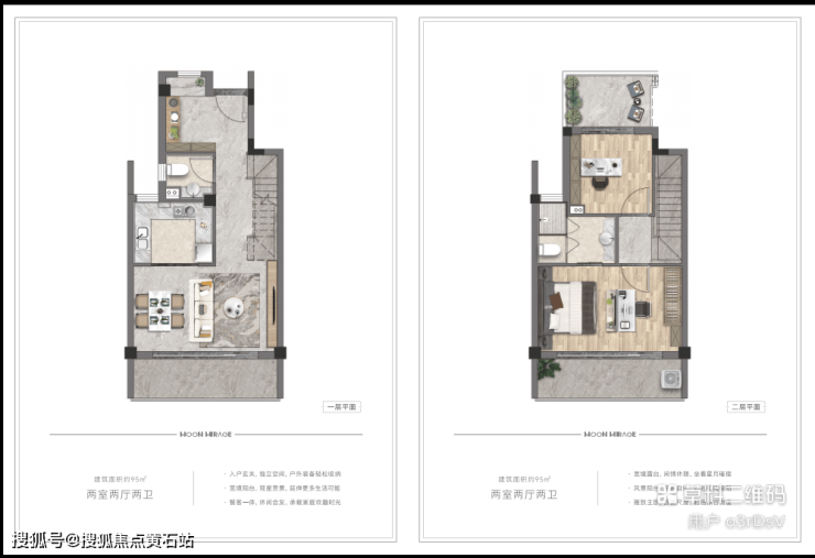 95平 上叠户型(两室两厅两卫)
