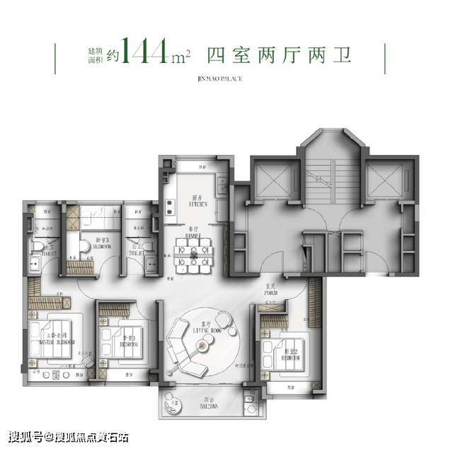 - 144㎡四房两卫(7个飘窗空间)