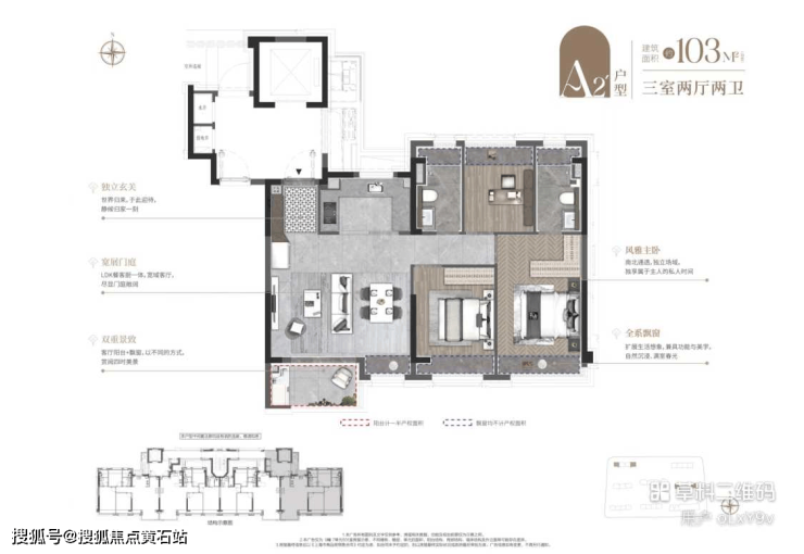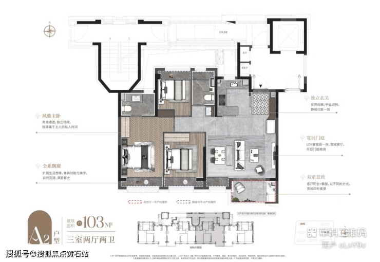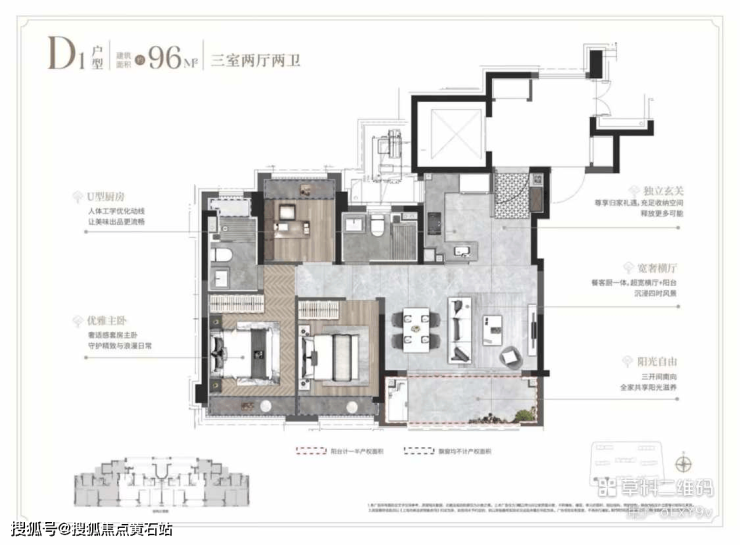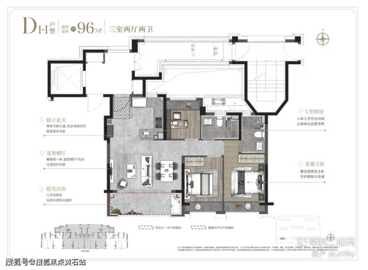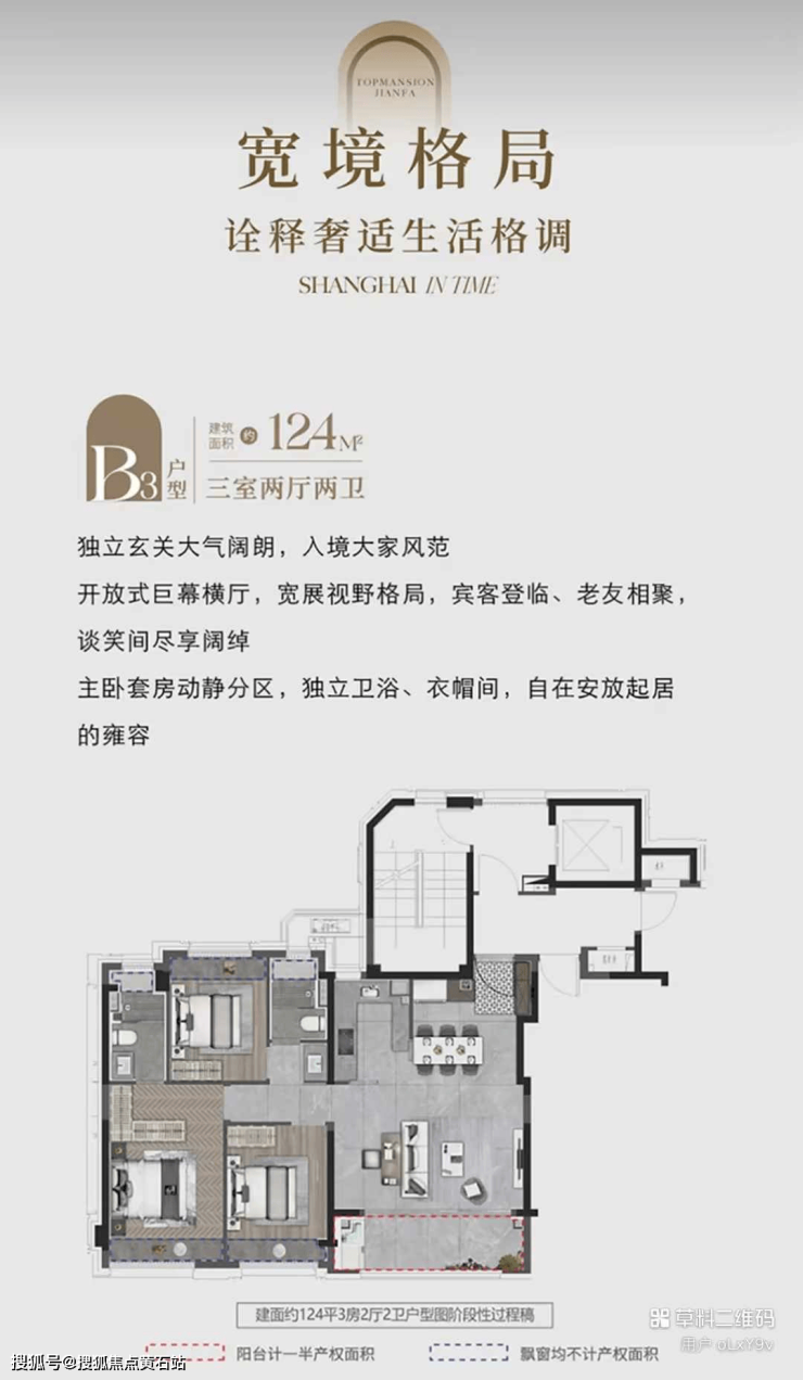 建面约96㎡/103㎡/124㎡三房两厅两卫