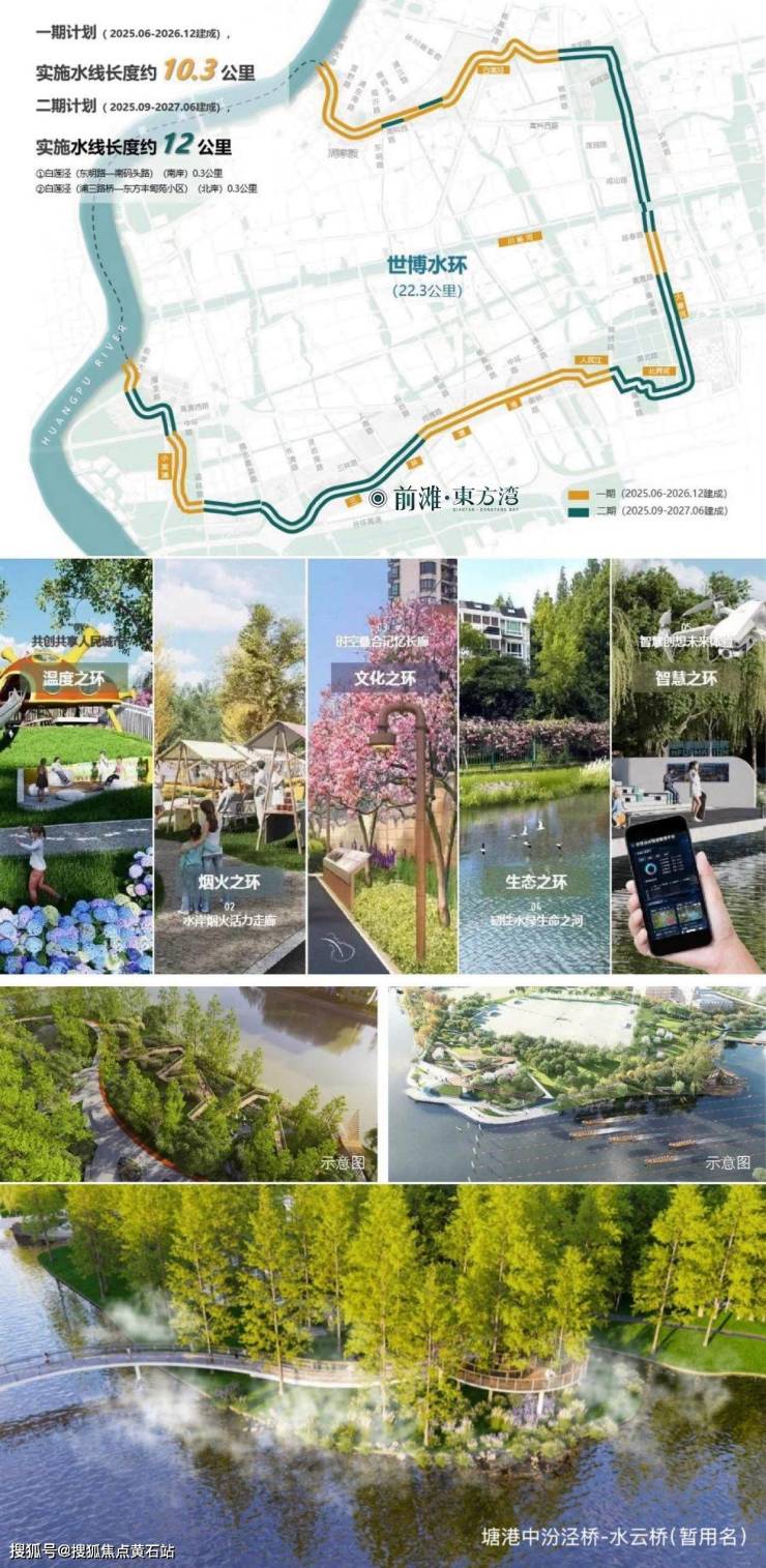 在繁华都市中,拥有一片宁静的自然天地,是许多人的梦想。前滩东方湾天赋稀贵双河资源,紧邻约 800 米滨河绿带,不仅是世博水环公园的有机延伸,更与社区自带约 1.3 万方街角公园、对面三林清风园融为一体,形成中外环罕见的“双园环抱、两水萦绕”生态格局。