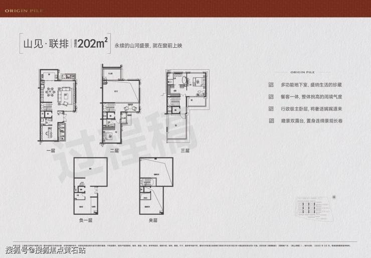 国贸海上原墅联排地下室层高5.65米,首层约3.3米,二层和三层均为3.15米