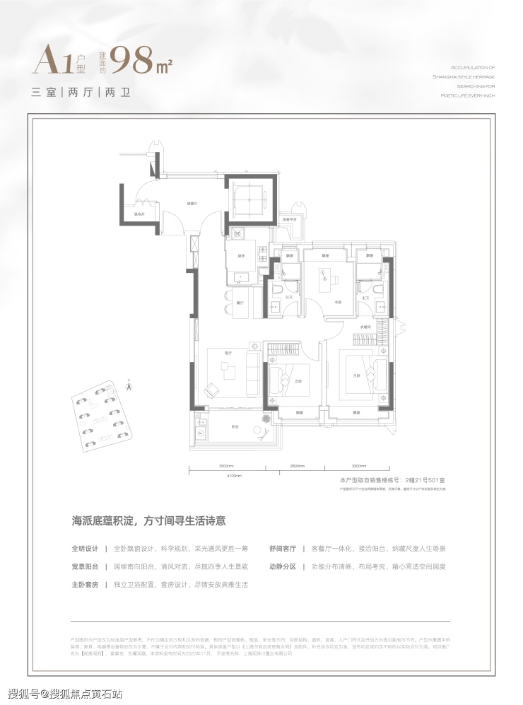 本宣传资料为要约邀请,相关内容不排除因政府相关规划、规定及本公司未能控制的原因而发生变化,规划建设范围之外的环境、公共设施、道路交通等的说明或介绍,仅为广告发布时了解信息,供客户参考,不构成本公司的允诺。本资料面积如无特殊说明均为建筑面积。本公司将根据实际情况进行修改,敬请留意最新资料 。买卖双方的权利义务以《上海市商品房预售买卖合同》及附件等协议为准。