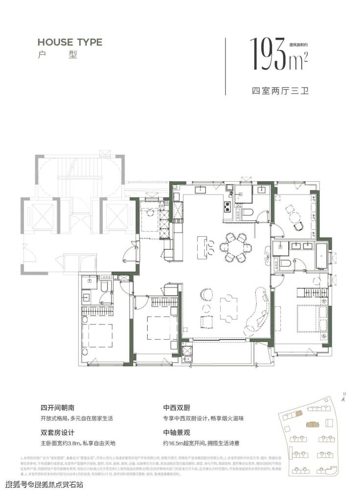 建面约 193㎡ 4 房 2 厅 3 卫:奢阔平层,终极改善之选,总价 2000 万内即可入主内中环。