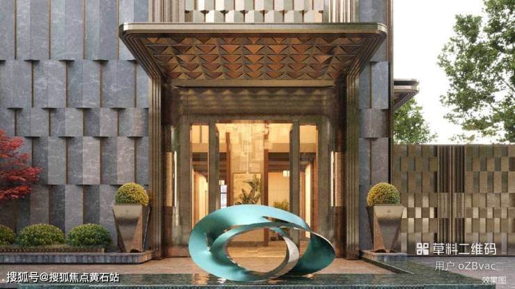 复刻和平饭店酒店式门庭,引入酒店式双线归家仪序,五进入户礼序与四重车仪之道,置身于海派隐奢的世界。高定酒店式落客区,尊奢入口,以国际顶奢酒店华尔道夫安曼式礼序营造,尽显尊贵风范。