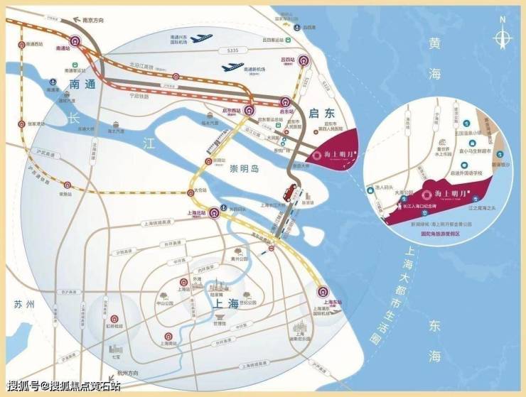 新湖绿城海上明月地处长三角核心区域,占地约6000亩,规划为“一核、七心、五区、九园”,与上海隔江相望,距离浦东直线距离约50公里,是世界上罕见的三水交汇处,被誉为“江海明珠”,立体交通网络的形成,将加速推动启东融入上海1小时生活圈。