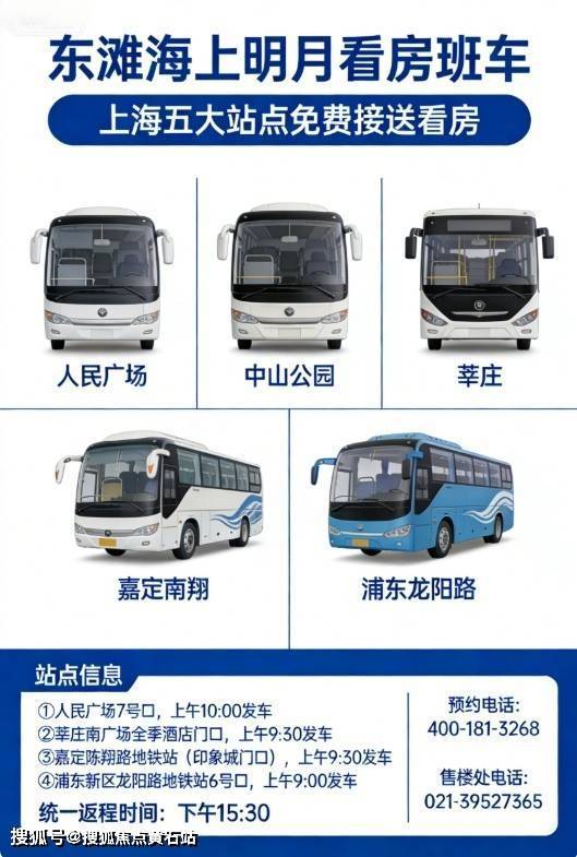 为方便全城客户轻松看房,我们在人民广场、中山公园、莘庄、嘉定南翔、浦东龙阳路均设置专属发车点,舒适大巴全程接送,沉浸式体验理想人居。