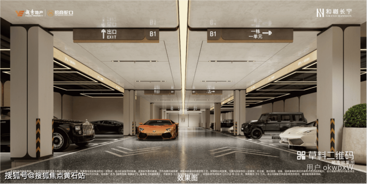 地下大堂,则以温润的白玉石材营造沉浸式归家体验。精奢车库的车行道地面采用水磨石、主体车道全吊顶设计,每个车位上方还都有LED环绕灯吊顶,让平凡的日常场景成为尊崇身份的暗语。