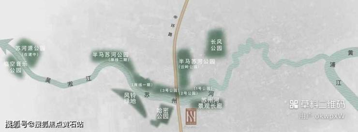 周边哈密公园、半马苏河公园岸线一期(在建中)及二期、苏州河景观长廊