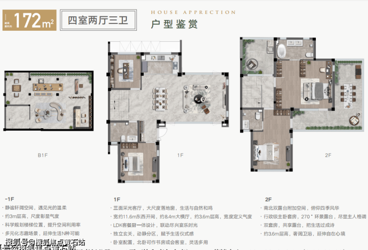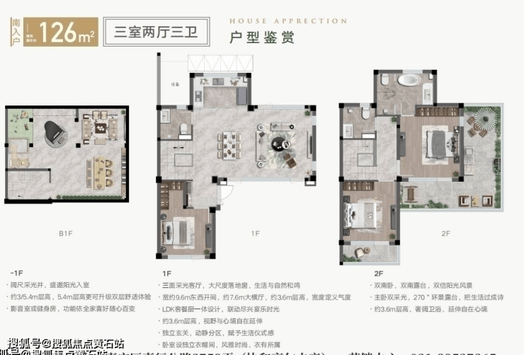 以126平别墅为例,套内可用面积约119.24㎡,赠送地下室面积74.06㎡+露台面积26.06㎡+闷顶可用面积约20㎡,实际可享受239.36㎡的套内空间+约150平的庭院面积。