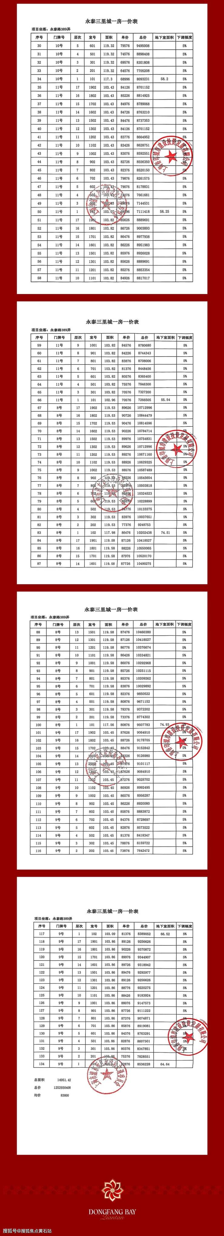前滩·东方湾 二期一房一价表: