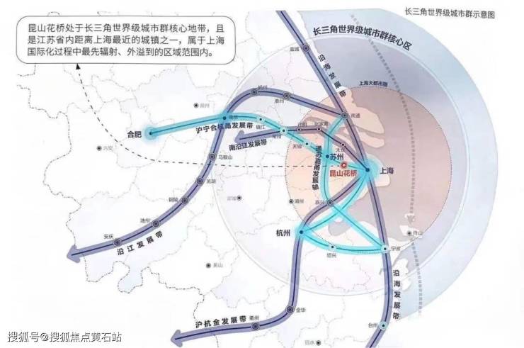 2021年2月,在国务院批复的虹桥国际开放枢纽“一核两带”功能布局中,昆山被纳入以虹桥商务区为起点延伸的北向拓展带。花桥将打造成为虹桥国际开放枢纽北向拓展带的战略支点和核心节点,让花桥与上海的联系更加紧密。