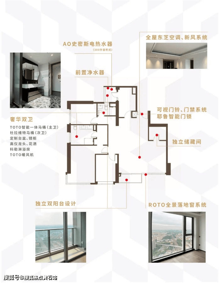 项目室内交付配备独立中央空调、新风、落地窗、独立卫生间、智能入户门