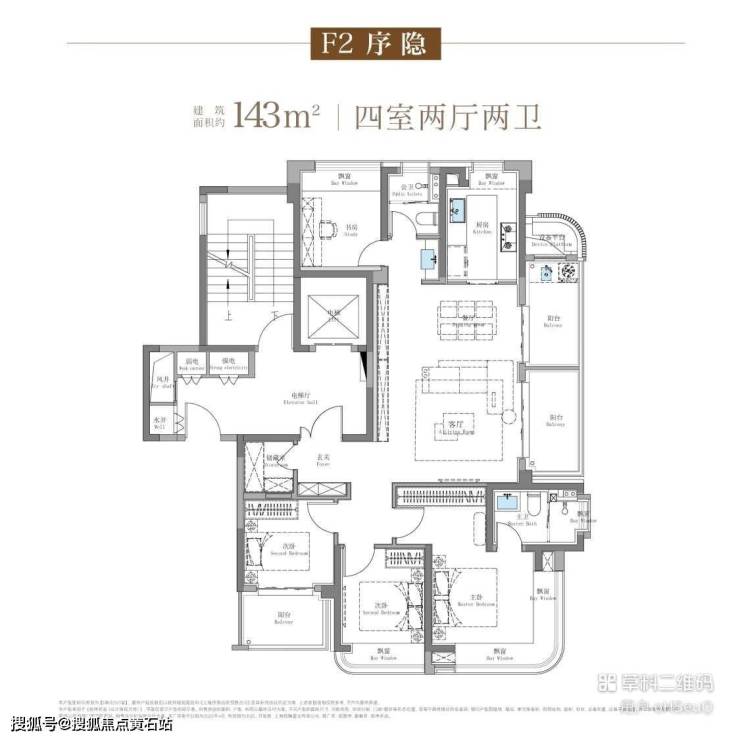 招商序143㎡ 四房两厅两卫 | LDKB一体化阔厅,南向+东侧环景采光,主卧270°飘窗尊享私密