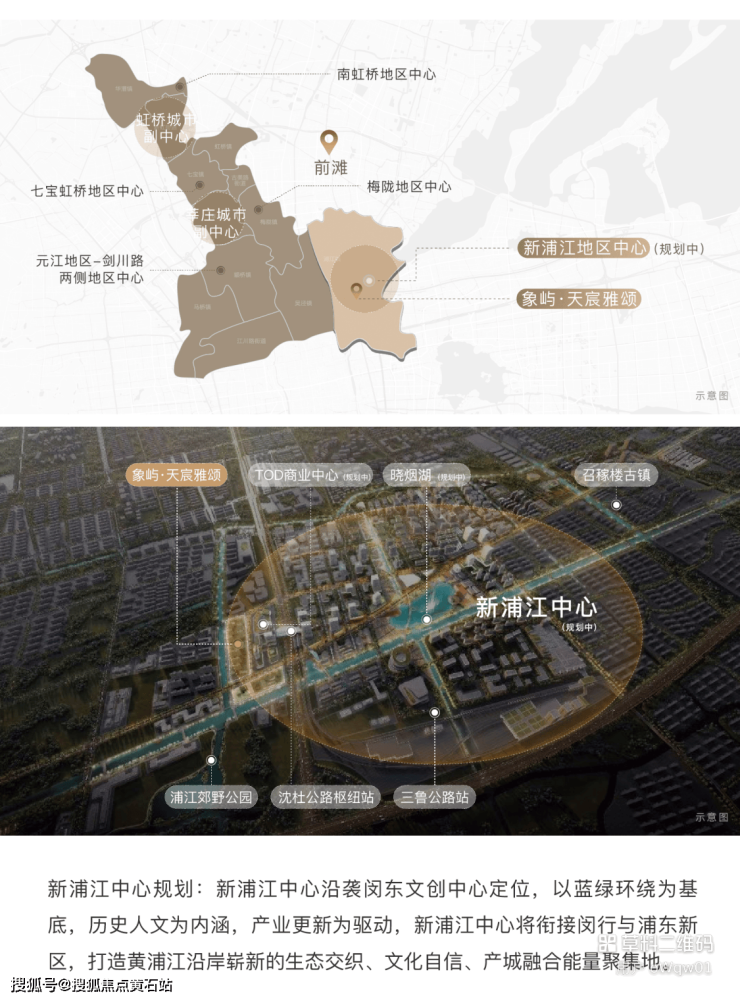 择址黄浦江沿岸约3公里处、一脉前滩之上、新浦江中心,本案所在之处作为上海中心城辐射区、闵行五大地区中心之一、浦东四大城镇圈之一,具备能级叠合的独特优势。